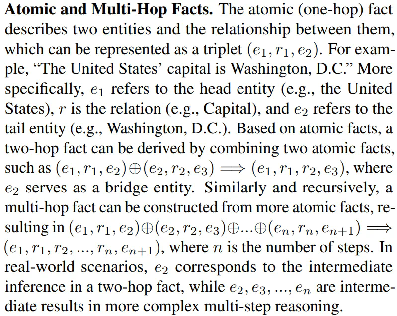 来表示原子(一跳)事实,并基于原子事实和连接规则来表示两跳事实以及多跳事实。