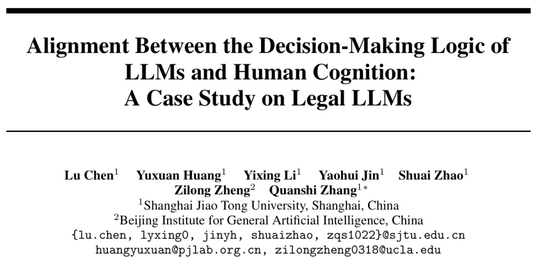 论文标题:Alignment Between the Decision-Making Logic of LLMs and Human Cognition: A Case Study on Legal LLMs