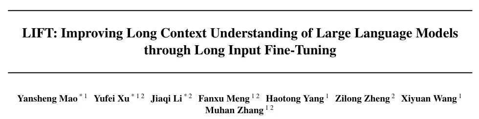 题目: LIFT: Improving Long Context Understanding of Large Language Models through Long Input Fine-Tuning -