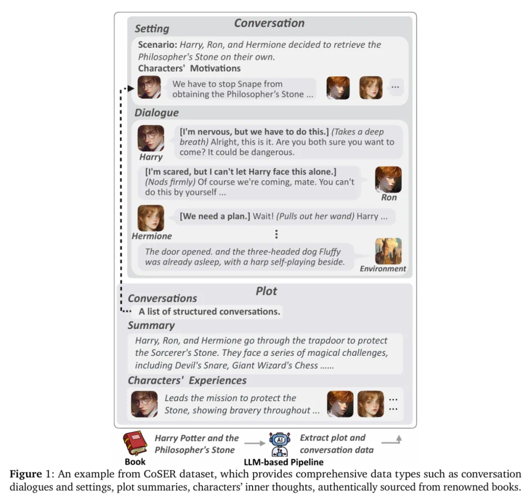 上图将 CoSER Dataset 与之前的数据集进行了比较。概括来说,CoSER 的独特之处在于: