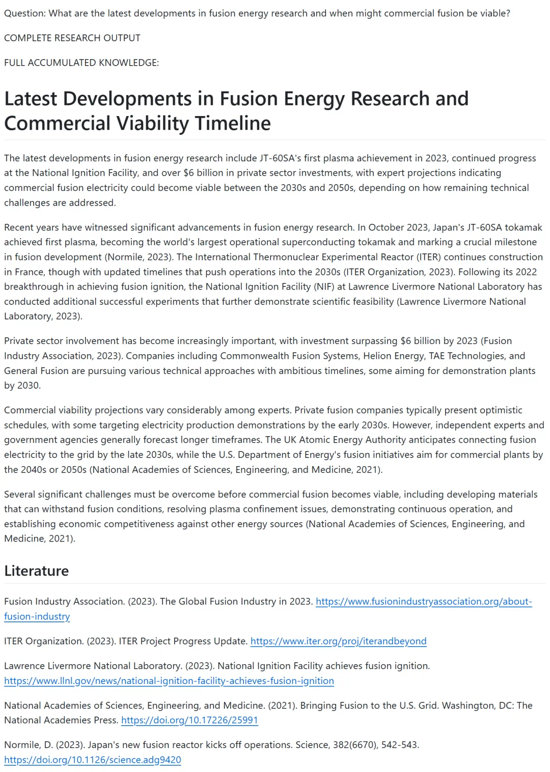 完整报告可参考:https://github.com/LearningCircuit/local-deep-research/blob/main/examples/fusion-energy-research-developments.md