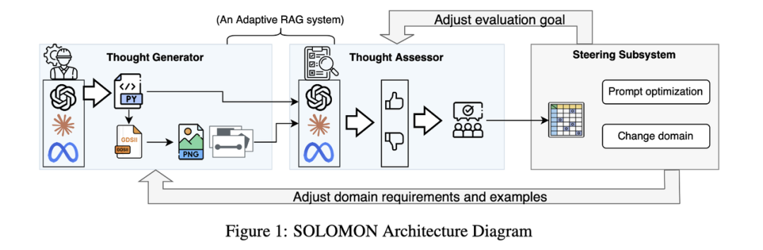 SOLOMON 框架集成了思维评估机制,通过迭代优化输出,提高解决问题的准确性。SOLOMON 利用提示工程(prompt engineering)来引导 LLM 生成解决方案,使其能够以最少的重新训练适应半导体布局任务。