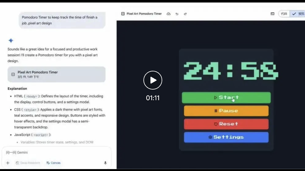 免费体验传送门:https://gemini.google.com/canvas