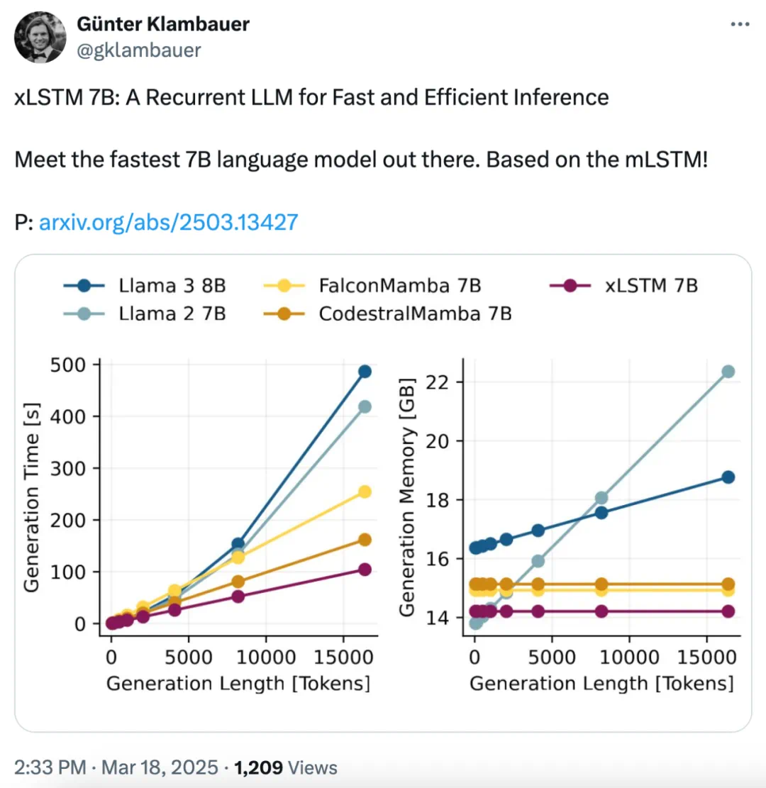 论文标题:xLSTM 7B: A Recurrent LLM for Fast and Efficient Inference -