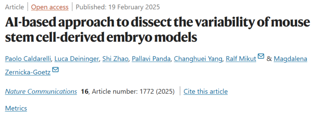 相关研究内容以「AI-based approach to dissect the variability of mouse stem cell-derived embryo models」为题,于 2025 年 2 月 19 日刊登于《Nature Communications》。