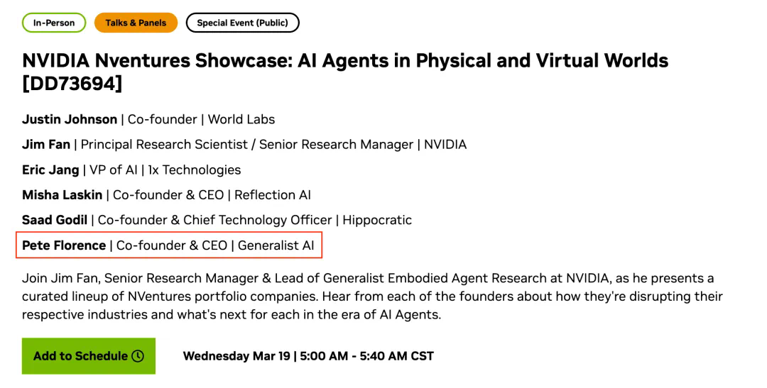 以 Generalist AI 联合创始人兼首席执行官的身份出席。