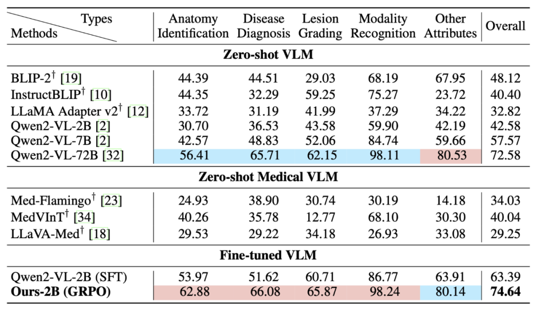 在人工智能跨界医疗的浪潮中,如何赋能视觉语言模型(VLM)去 “看懂” 多种类型的医学影像,并在疾病诊断、病灶分析等任务中给出可信解释,已成关键挑战。