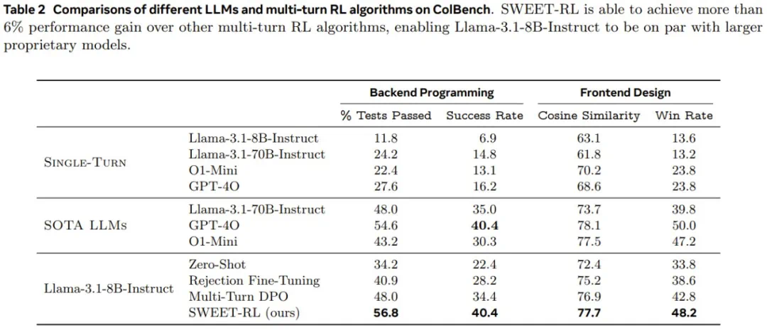 论文标题:SWEET-RL: Training Multi-Turn LLM Agents on Collaborative Reasoning Tasks -