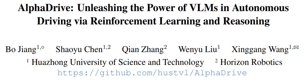项目主页:https://github.com/hustvl/AlphaDrive -