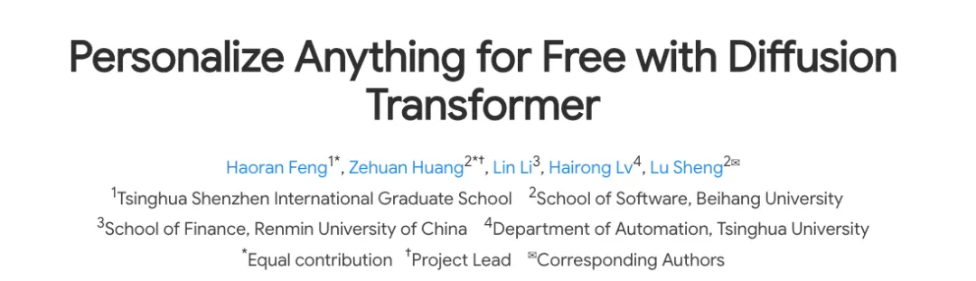 论文标题:Personalize Anything for Free with Diffusion Transformer