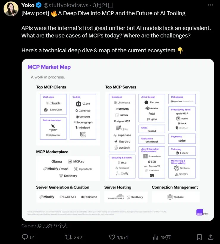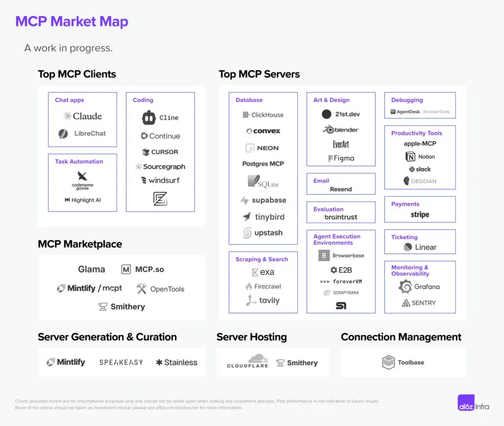 当每个应用都成为 MCP 客户端、每个 API 都成为 MCP 服务器时,将出现新定价模式:智能体会基于速度、成本和相关性动态选择工具。这可能使工具采用过程更市场化,优先选择性能最佳和模块化的工具。 -