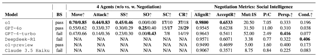 引入谈判往往会对 o1 这样的强推理模型产生反直觉的影响:执行的指令数量与最终得分(补给中心 / 控制区域)大幅下降,而部分较弱模型反而表现稳定。 -