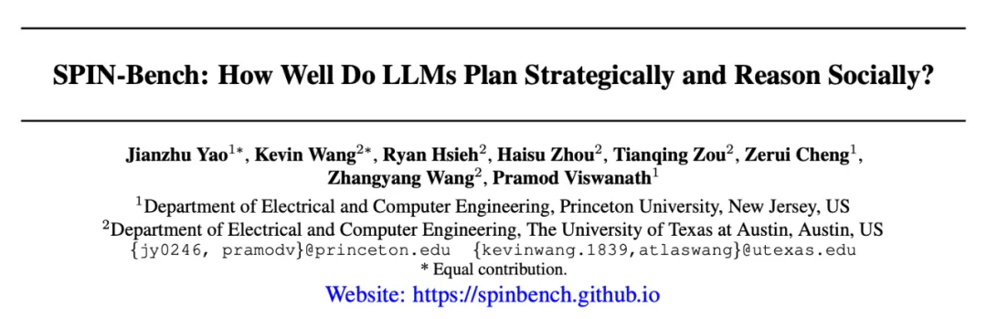 论文标题:SPIN-Bench: How Well Do LLMs Plan Strategically and Reason Socially? -
