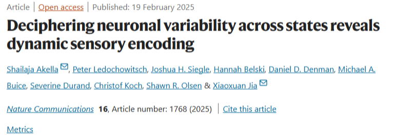 该研究以「Deciphering neuronal variability across states reveals dynamic sensory encoding」为题,发表于 2025 年 2 月 19 日的《Nature Communications》。