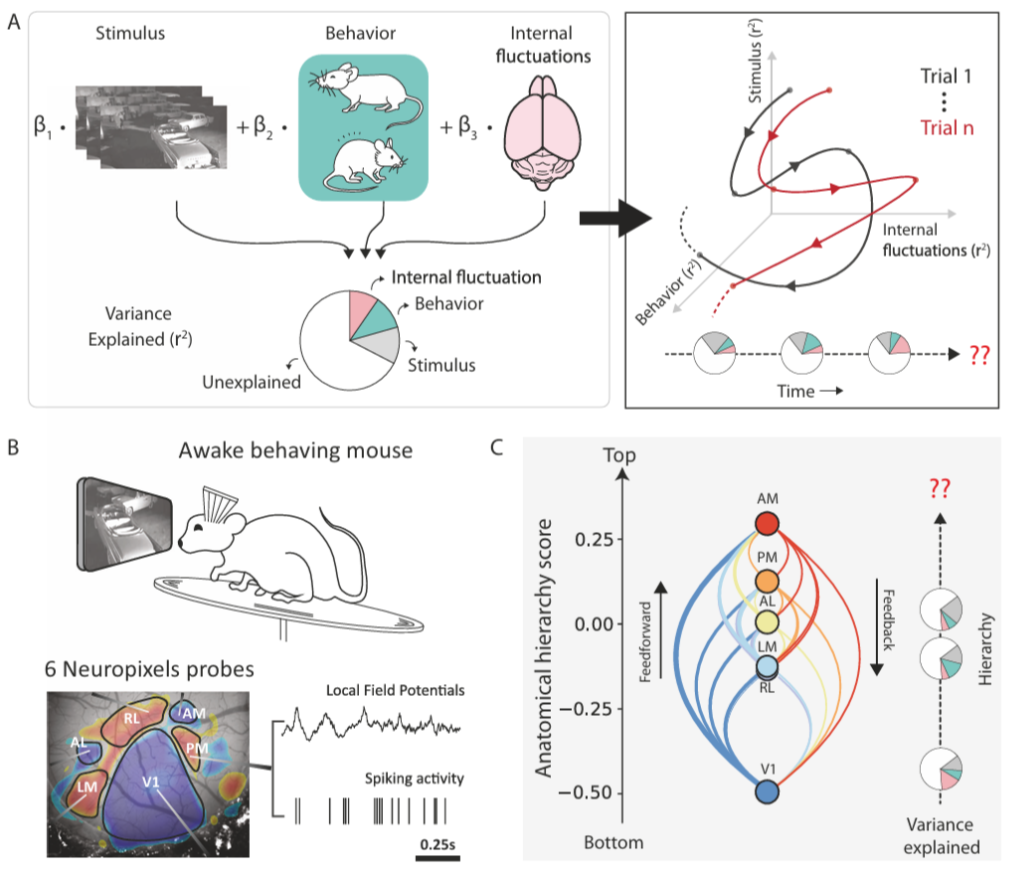 更深层的挑战在于:不同来源的变异性以非线性方式耦合,且贡献权重随时间快速变化。例如,在主动探索时,小鼠视觉皮层通过去同步化提升刺激响应,而在静息状态则呈现同步化低敏感模式。