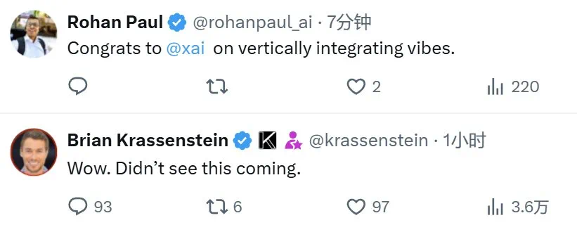 虽然在此之前,xAI 已经开始与 X 深度整合了 ——xAI 的聊天机器人 Grok 已经紧密整合在了 X 平台中,但这场收购毫无疑问将会把 X 完全纳入到 xAI 的统一管理之中。