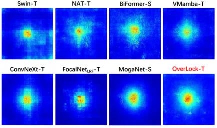 不同 vision backbone 网络的有效感受野对比:如图 3 所示,OverLoCK 在具有最大感受野的同时还具备显著的局部敏感度,这是其他网络无法兼备的能力。