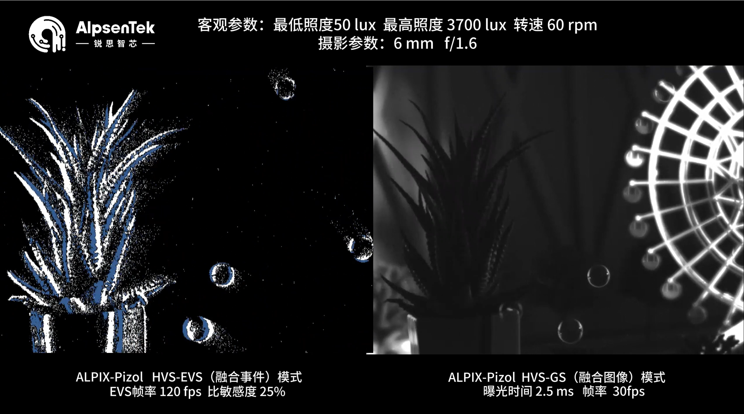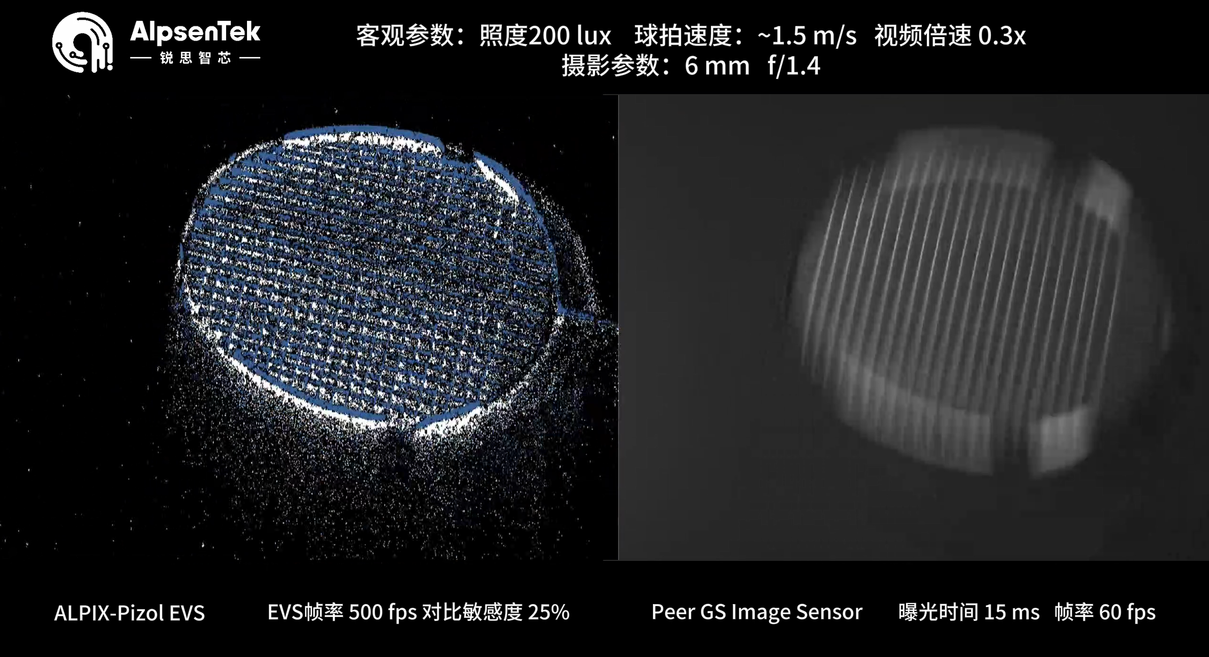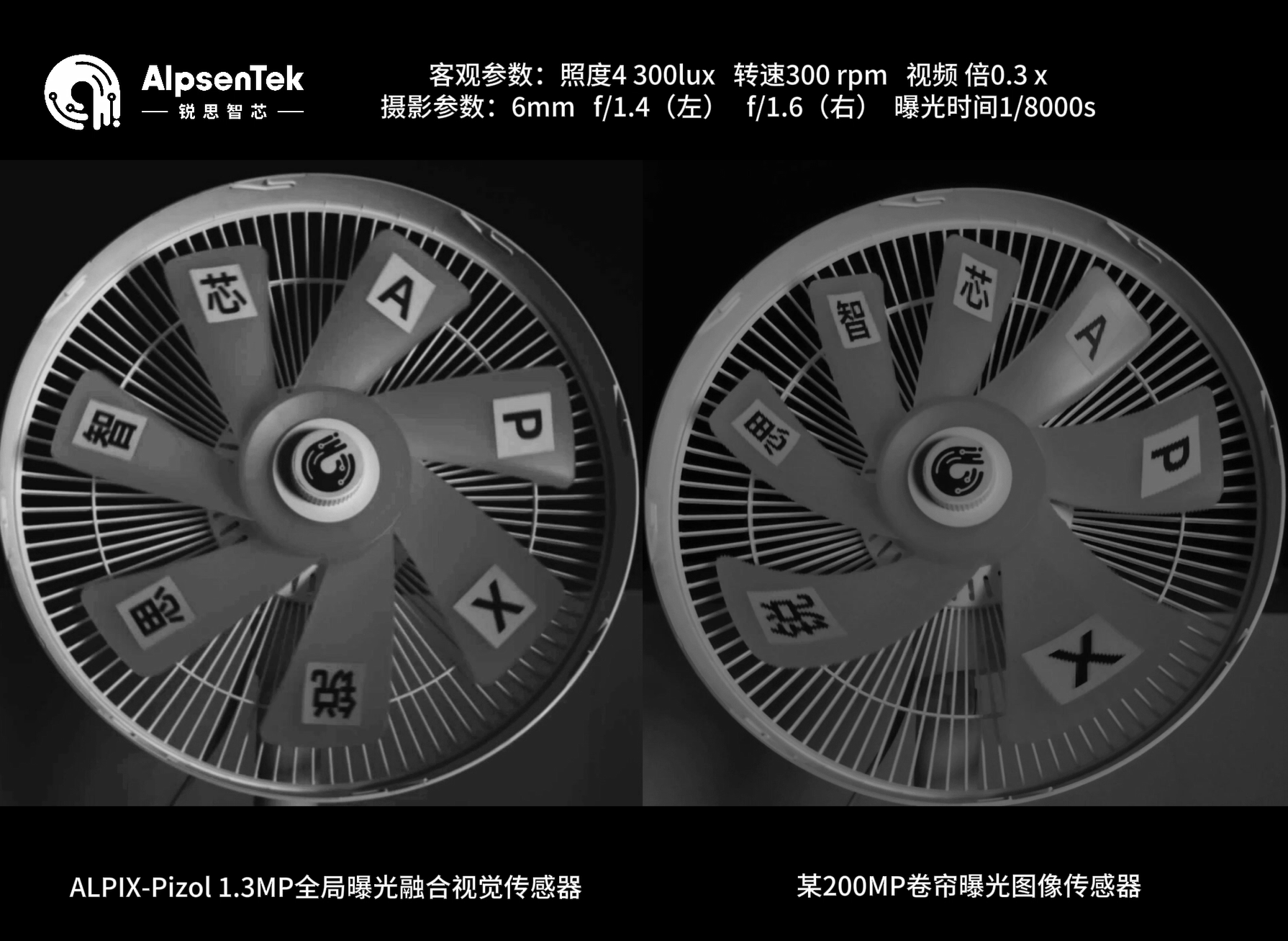 ALPIX-Pizol(左)采用全局曝光,实现所有像素同时曝光,去除卷帘曝光(右)常见的果冻效应带来的畸变
