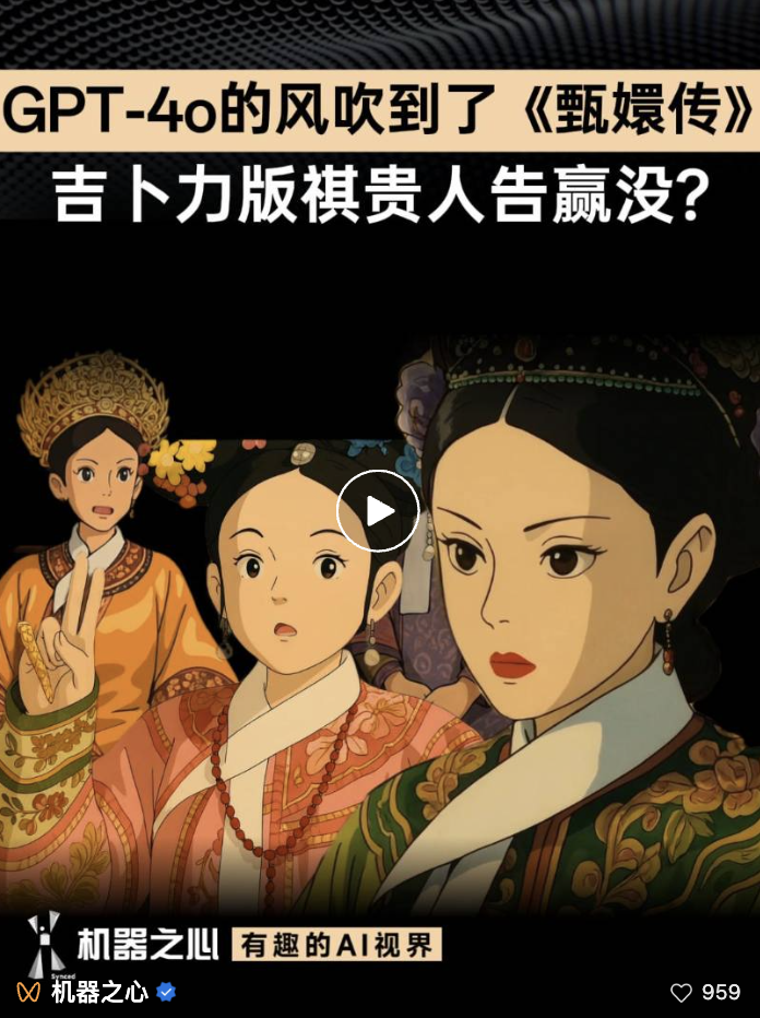 上周五,我们也用 GPT-4o 和可灵,搞了个吉卜力版《甄嬛传》,没想到小火了一把。