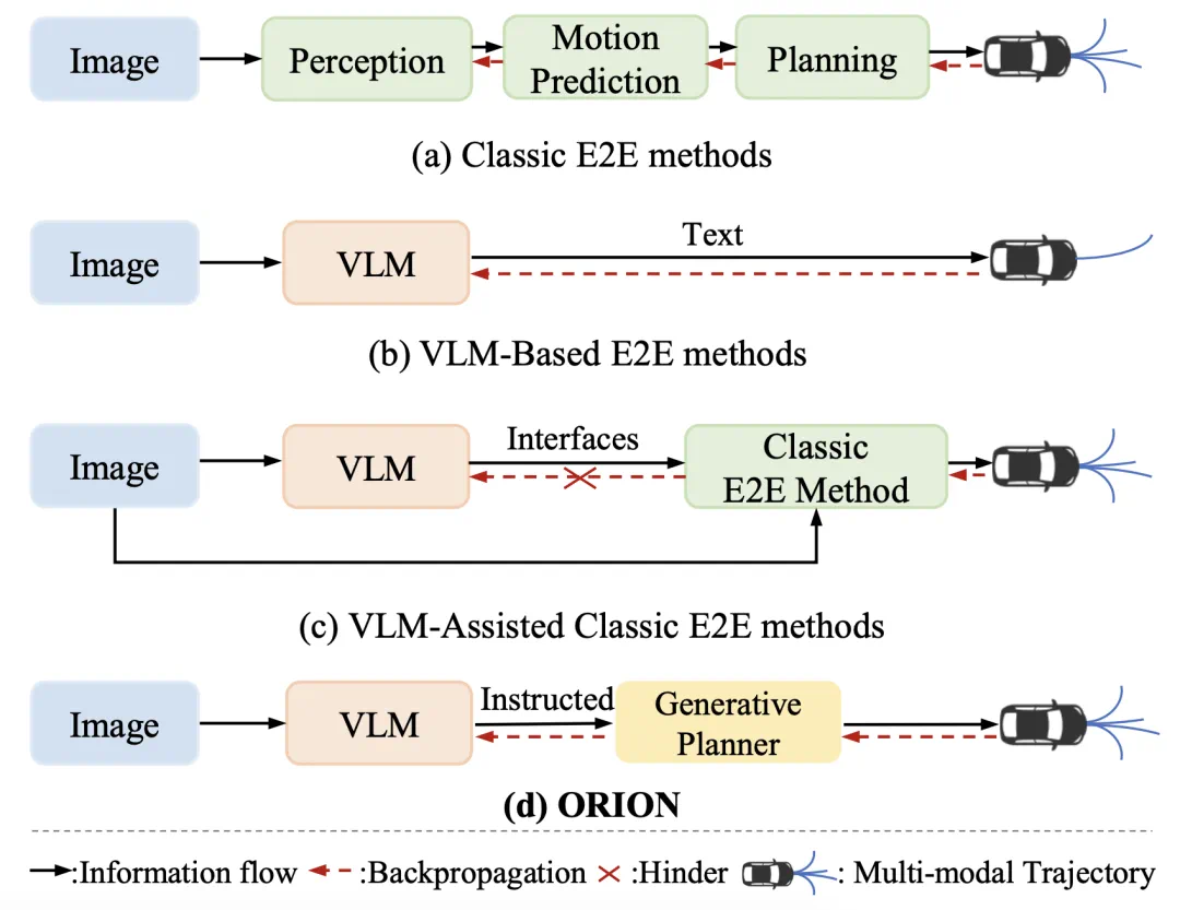 图 1:不同的端到端自动驾驶范式的对比