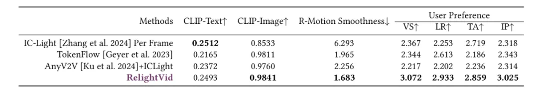 通过与图像逐帧方法、video editing 等 baseline 方法比较,RelightVid 在保持视频内容连贯性的同时,实现了更加真实、自然的光照变化。