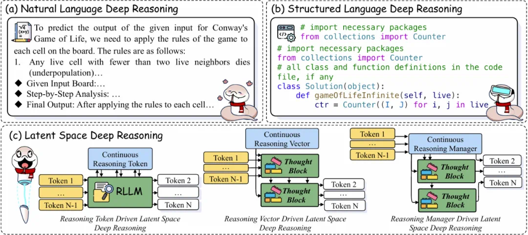 图 4:深度推理格式主要分为三类:自然语言、结构化语言与潜在空间推理(进一步细分为基于 token、向量和管理器驱动的潜在推理)