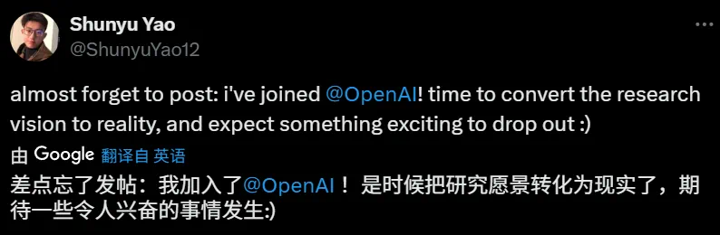 文章来源于互联网:清华学霸、OpenAI姚顺雨:AI下半场开战,评估将比训练重要
