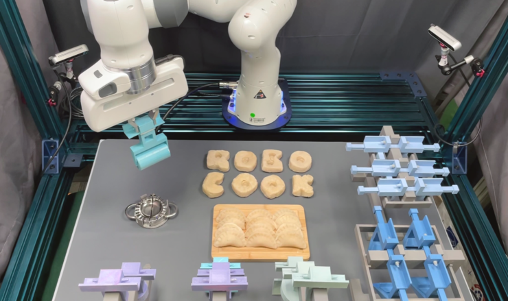 次年李昀烛毕业,来到斯坦福,在李飞飞和吴佳俊组里做博士后,顺着 RoboCraft 继续推进 RoboCook 工作,和史浩辰(斯坦福 PhD)合作,通过图神经网络和预测控制算法让机械臂学会操控各种软体材料,比如借助工具完成包饺子任务,最终获得了 CoRL 2023 的最佳系统论文奖。