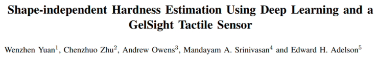 为了实现广泛应用、测试任意物体的硬度,她与 William 组的 Andrew Owens 合作,将物理洞察与卷积神经网络结合——前者确保模型具备可解释性,后者利用 CNN 和 RNN 处理高维信号的优势,最终实现对任意形状物体的通用硬度检测,并发表于 ICRA 2017。这项研究也让原文祯成为了最早融合触觉与深度学习的学者之一。