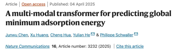 该研究以「A multi-modal transformer for predicting global minimum adsorption energy」为题,于 2025 年4 月 4 日刊登于《Nature Communications》