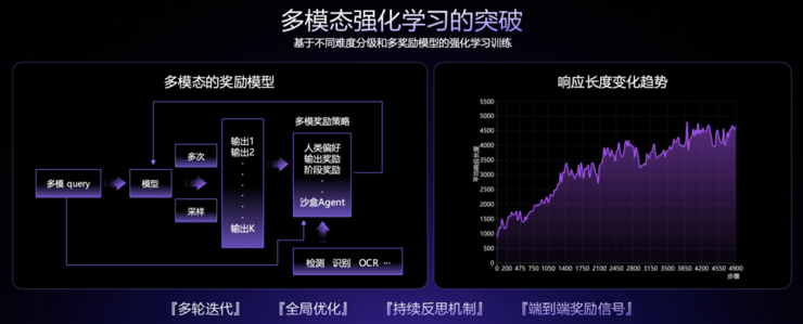 DeepSeek 目前仍以文本为主,而商汤从头到尾都是以开发多模态大模型为核心,因此在深度思考与强化学习的技术上也以多模态为母体,率先探索了多模态模型的长思维链构造。
