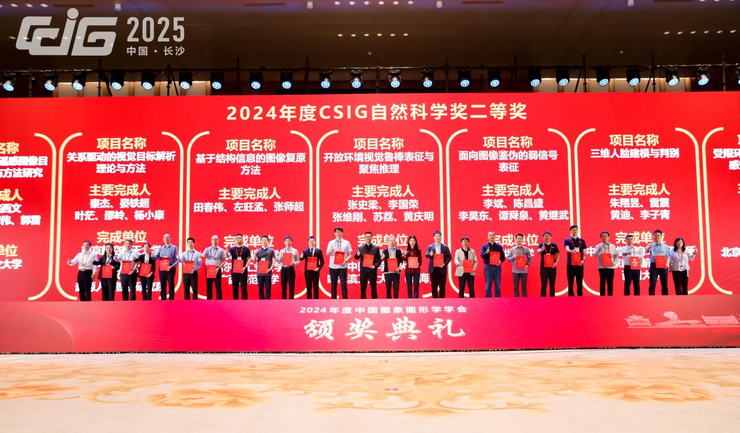 2025年5月10日,湘江之滨群星璀璨,中国图象图形学学会(CSIG)年度颁奖典礼在长沙隆重举行!颁奖典礼上颁发了2024年度CSIG自然科学奖、技术发明奖、科技进步奖、青年科学家奖、石青云女科学家奖获奖证书,并颁发CSIG高等教育教学成果激励计划、博士/硕士学位论文激励计划、中国科协青年人才托举工程证书。百余位获奖代表齐聚星城,共同见证中国图像图形学界的年度荣光时刻。