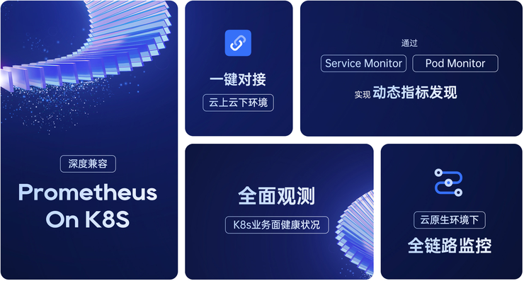 l 通过引入 Service Monitor 与 Pod Monitor 动态发现能力,深度解析云原生数据协议,优化 Prometheus 接入流程,实现云上云下环境一键式数据对接,大幅降低接入门槛与时间成本;