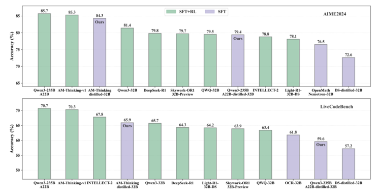 正如AM团队在一篇分析文章中指出,“蒸馏数据的选择不再是技术细节,而是决定性能上限的关键因素。”优质的蒸馏数据源未来或许将直接影响训练效率和性能上限。