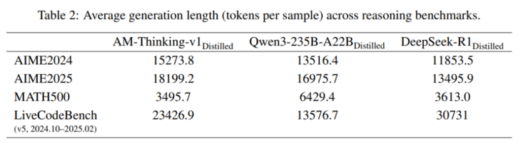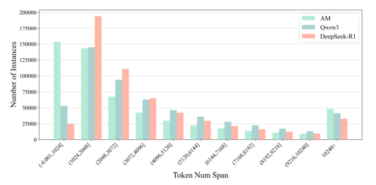这意味着,AM的响应跨度广——它既能生成简洁的1024 token以内回复,也能输出超过 10240 token 的复杂推理链,这种“长短结合”的分布为模型的自适应能力提供了数据支撑。