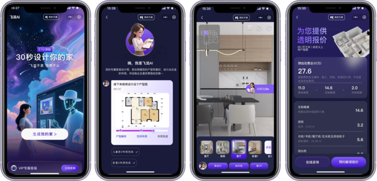 借助以上技术,飞流AI已进入公测,构建“空间解析→空间生成→空间交互编辑”一体化智能流程,真正实现想象到落地的无缝闭环: