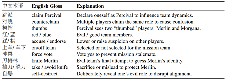整个 InMind-Avalon 数据集共包含 30 局完整对局,884 个回合、160 条轨迹和 30 篇反思总结,覆盖 Merlin、Percival、忠臣、Morgana、刺客等角色,并保留了中文实战中的口语化术语。这样的数据不仅复杂,而且贴近真实互动。