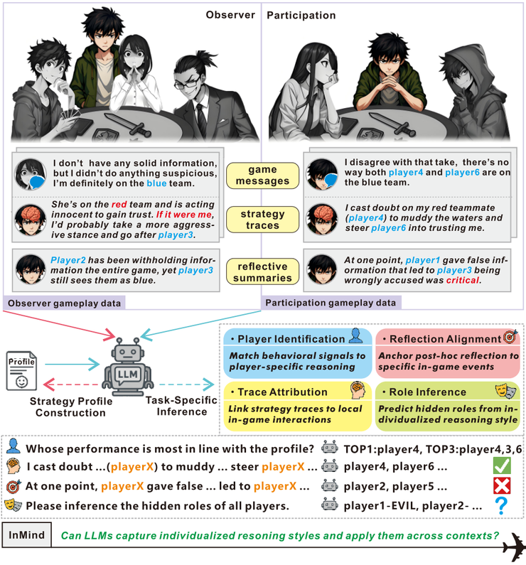 研究团队选用 Avalon 作为载体,是因为这类社交推理游戏天生会放大个体差异。同样的局势下,有人会逻辑缜密地逐条分析,有人则完全依赖直觉,还有人喜欢通过伪装和试探来误导他人。这种风格差异,正好是检验大模型能否“因人而异”的最好场景。