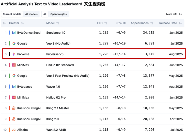 文章来源于互联网:PixVerse V5入围Artificial Analysis第一梯队,上线首日全球超百万用户更新并体验
