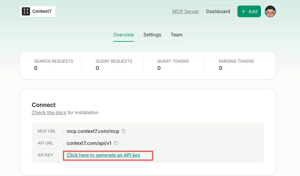 claude mcp add context7 -- npx -y @upstash/context7-mcp --api-key YOUR_API_KEY