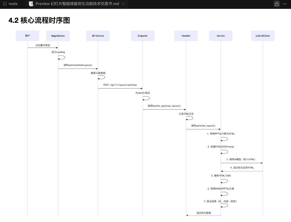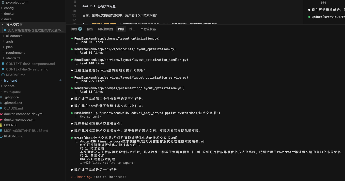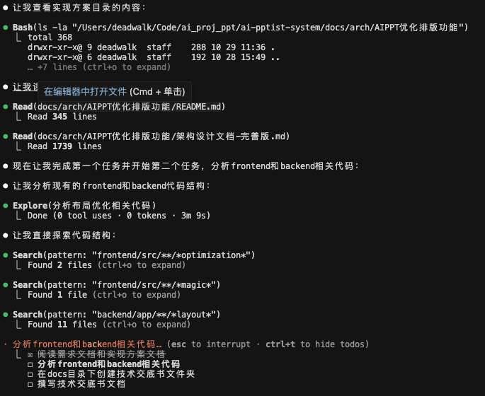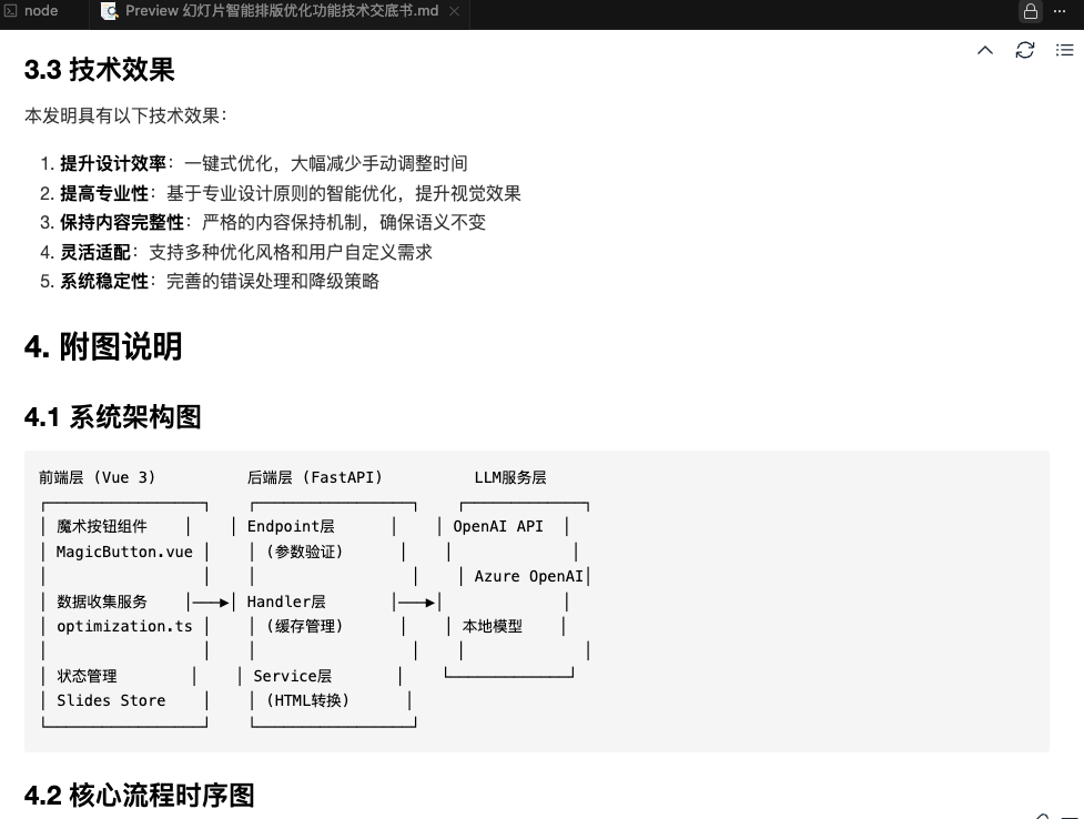 Task 请帮我撰写技术交底书 撰写的内容主要是当前项目中所使用的幻灯片优化功能. 相关资料: 1、需求文档:docs/requirement/需求文档v0.2.md 2、实现方案:docs/arch/AIPPT优化排版功能 3、代码:请查看frontend和backend下对应的代码