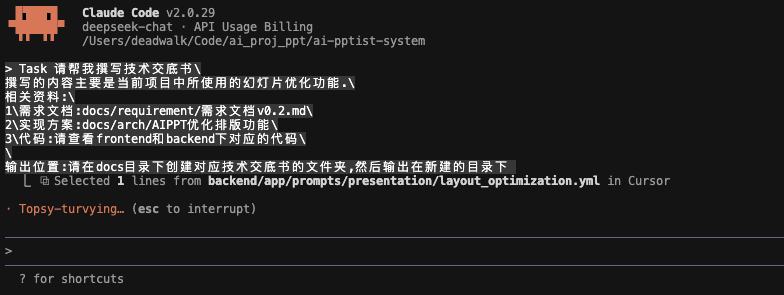 比如:我希望在工程目录ai-pptist-system代码目录下使用,那么在命令行下切换到此目录