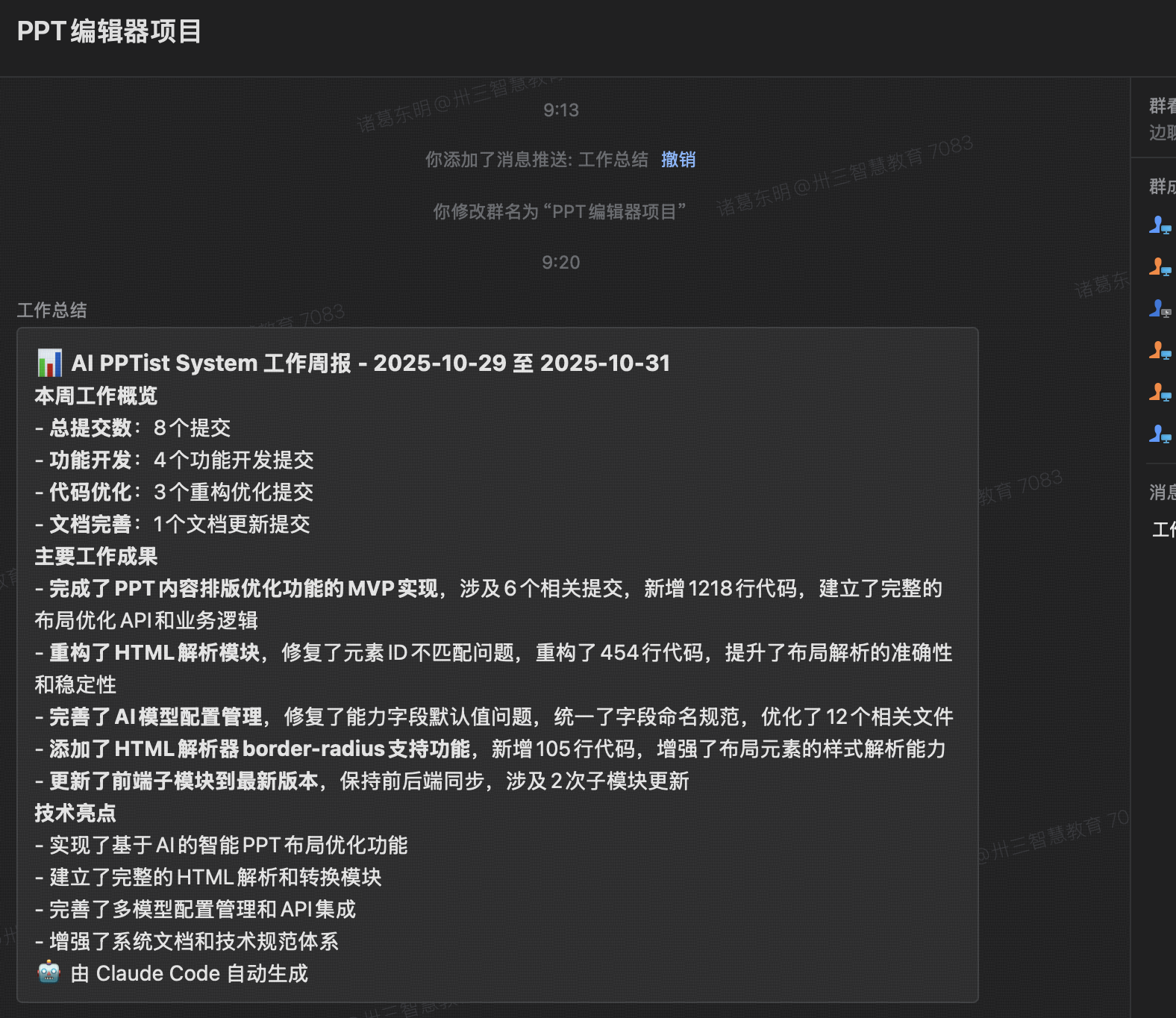 - **内容提取**:从提交信息中提取核心工作项和关键数据