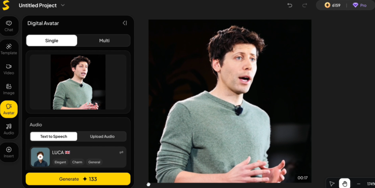 在相同的对话内容下,我们还生成了一个由奥特曼单人出演的数字人视频。整体表现依旧流畅,语音与表情同步自然,人物在说话时的停顿与呼吸节奏也得到了较好还原。单人场景在情绪表现上更加集中,更容易看出模型对语音细节的捕捉能力。