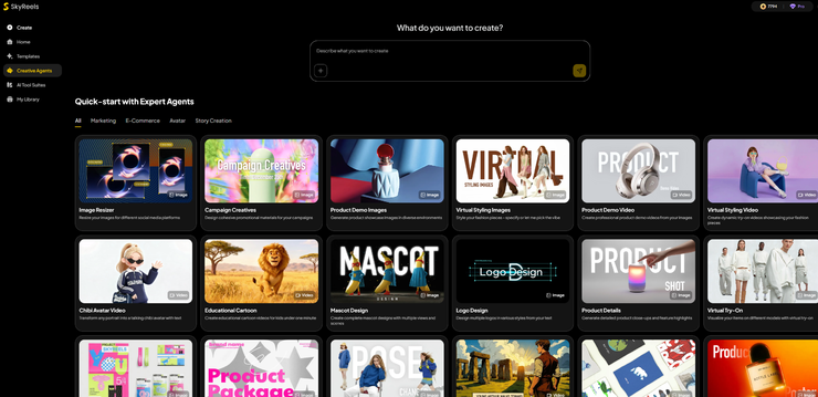 它既可以让熟悉 AI 的创作者可以直接生成图像、视频、音频或数字人,也能帮助希望获得更结构化帮助的用户,可以调用近三十个聚焦具体场景的 Agent,获得任务级协助。除此之外,初学者或效率导向的创作者,只需使用模板,输入文字或替换画面,即可快速完成创作。