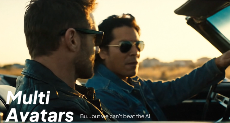测试中,我们先是上传了一张老马与老黄的经典名场面图,并为其添加了相应的台词。最终在生成的视频中,两位角色的语气自然流畅,表情与身体细微动作精准匹配语音节奏。无论是说话时的轻微点头、视线的转移,还是停顿与呼吸的节奏,都呈现出接近真人表演的真实感。