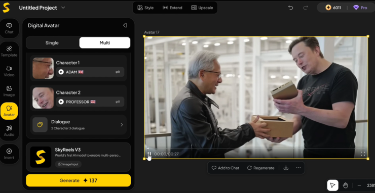 除此之外,我们还测试了一下全新 SkyReels 的其他功能。