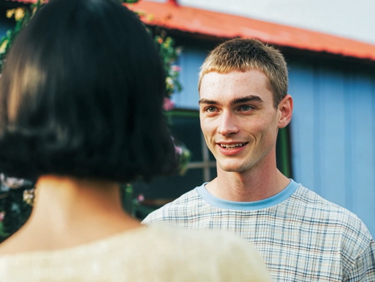 最终生成的视频令人惊艳,镜头反转后,原片中仅作背景的女性角色被完整生成,她的表情从微微低头到抬眼、轻笑,再到开口说话的细微变化都被自然捕捉,情绪层次清晰。