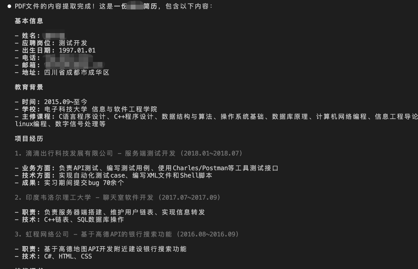 接下来测试PDF读取能力。同样的,我们直接在输入框使用相应的提示词即可触发对应的内容。