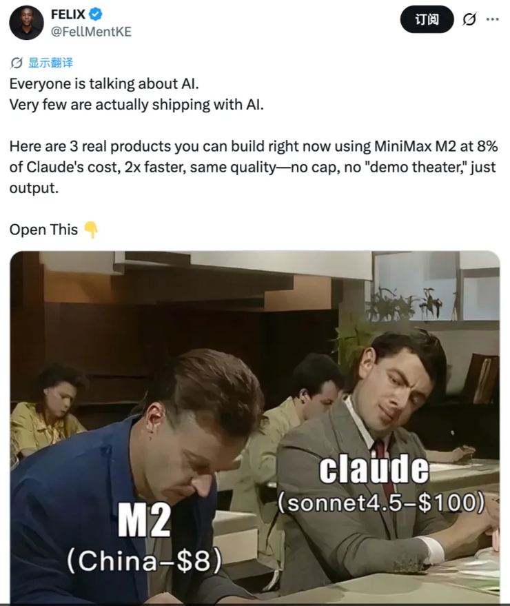 一是,讨论的焦点不再是“中美技术究竟差几代”,而是开始认可中国 AI 势力崛起甚至即将迎来反超,比如以 Airbnb 为代表的海外企业,公开表示大量采用通义千问而不常用 OpenAI;MiniMax开源模型 M2 的 AI Coding 能力超越 Claude,位居 OpenRouter 编程能力前三。